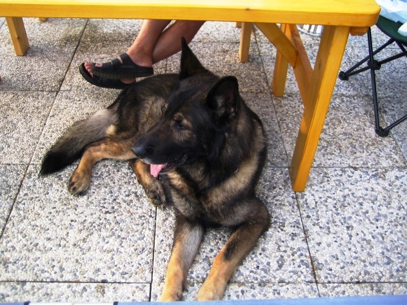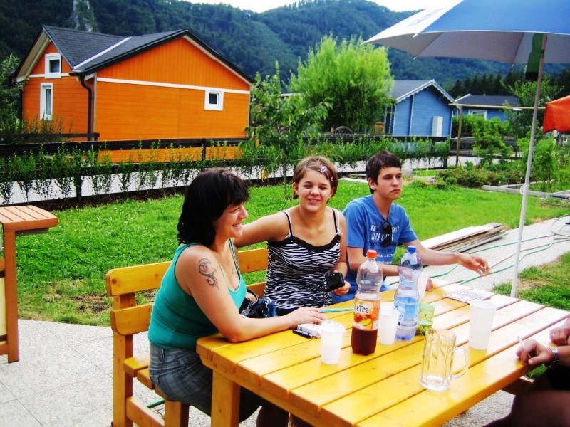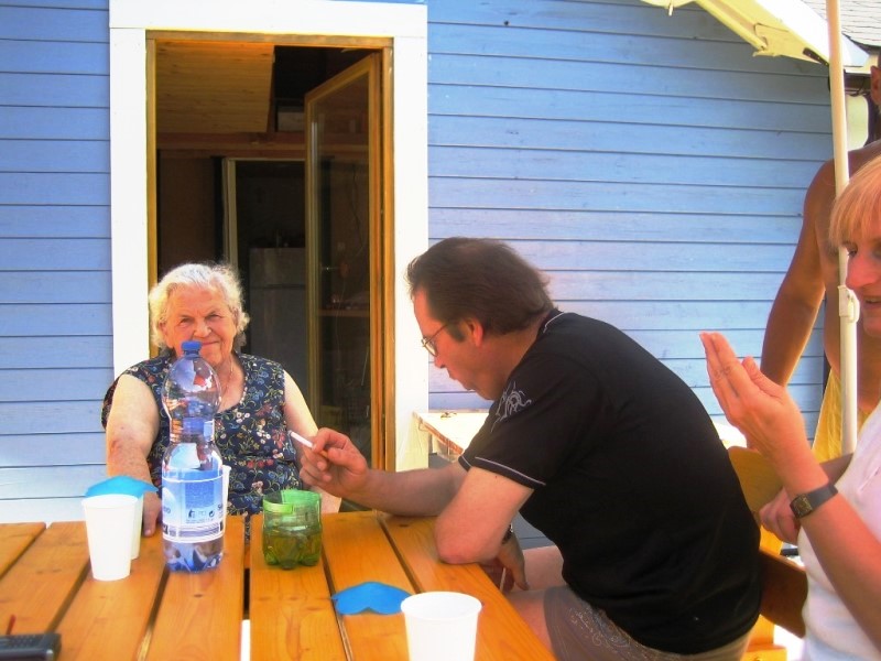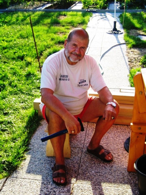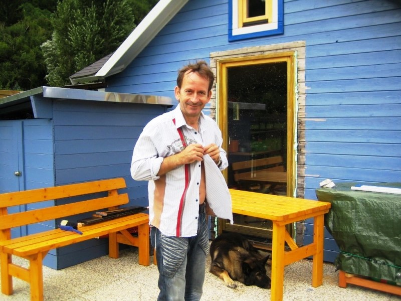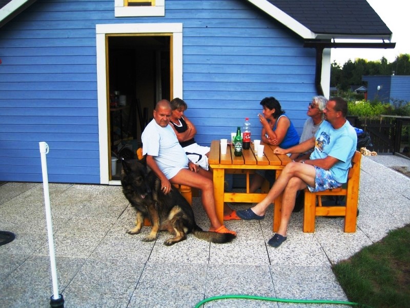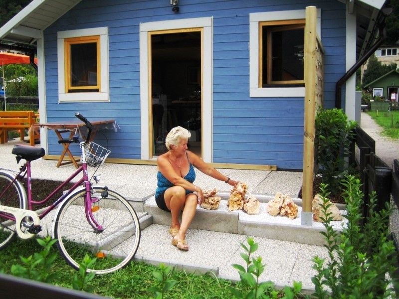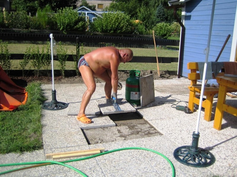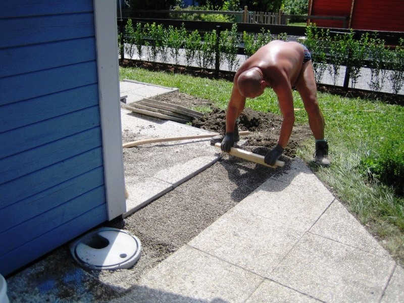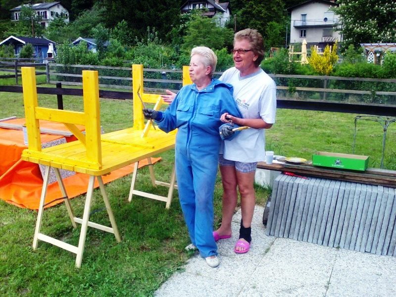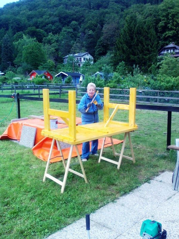 Heidi beim Streichen unserer Neuen Sitzgarnitur