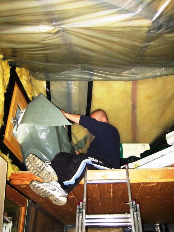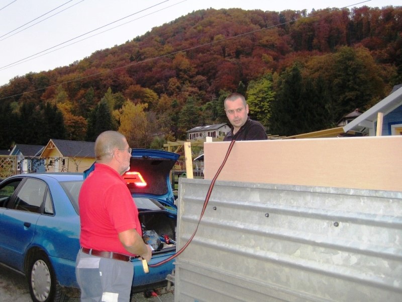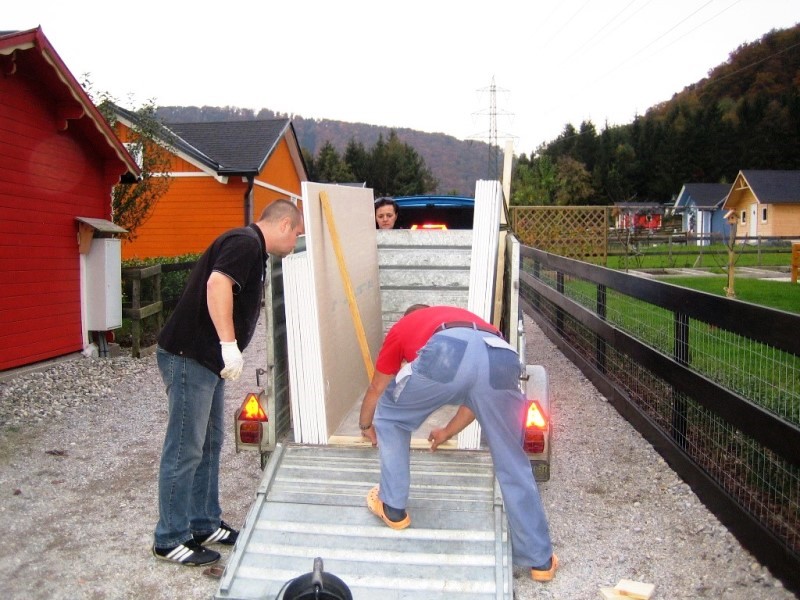 Robert nimmt die Überschüssigen Gips Platten mit. Die Ladung muss gesichert werden