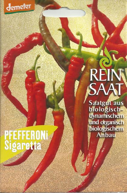 Mild-würziger, mittellanger, spiralförmiger, roter Pfefferoni mit hohem Ertrag. Reift von dunkelgrün auf rot. Beste Eignung zum Einlegen in vollreifem Zustand. Die getrockneten Pfefferoni ergeben gemahlen ein kräftig rotes, süßes Paprikapulver.
