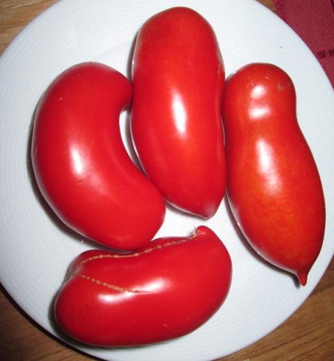 • San-Marzano-Tomaten sind längliche Tomaten, die auch als Flaschentomaten bezeichnet werden. Sie zeichnen sich durch ein intensives und fruchtiges Aroma aus. Sie gehören, wie alle Tomaten, der Familie der Nachtschattengewächse an und sind somit eng mit anderen Speisegewächsen wie der Kartoffel verwandt