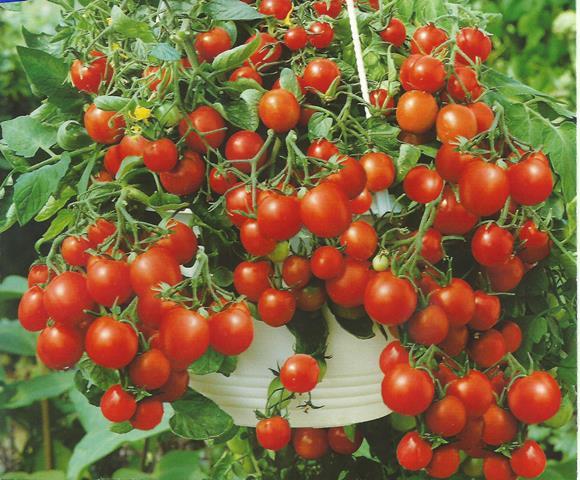 - Tumbling Tom Red‘ ist eine Cherrytomate für Kübel, Balkonkästen und Ampeln.